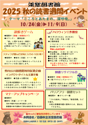 - 【淡窓図書館】「秋の読書週間」イベントを開催します