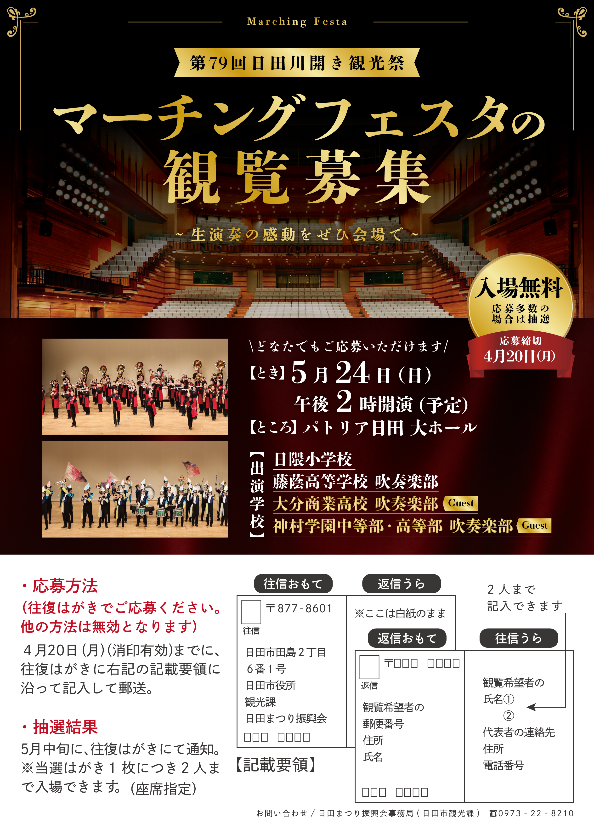 注)マーチングフェスタの観覧には事前申し込みが必要です。